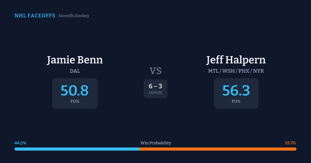 Jamie Benn vs Jeff Halpern — Faceoff Head-to-Head