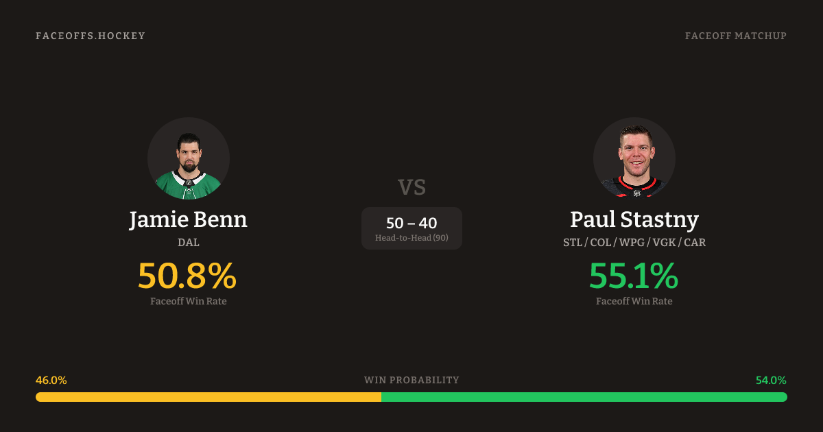 Jamie Benn vs Paul Stastny — Faceoff Head-to-Head