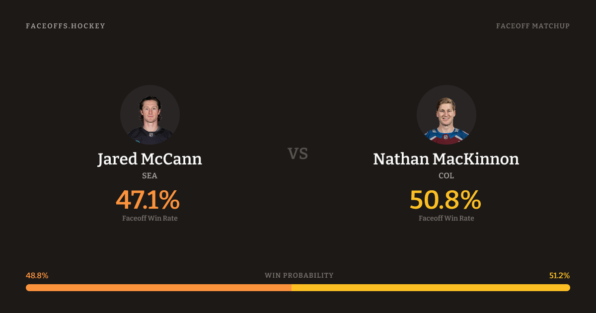 Jared McCann vs Nathan MacKinnon — Faceoff Head-to-Head