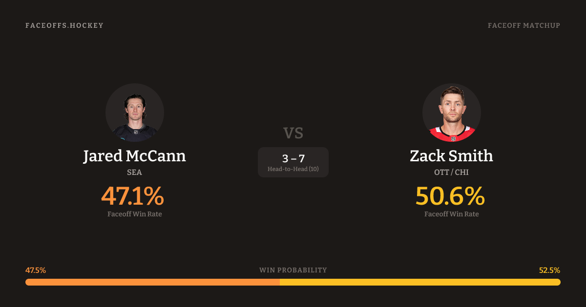 Jared McCann vs Zack Smith — Faceoff Head-to-Head