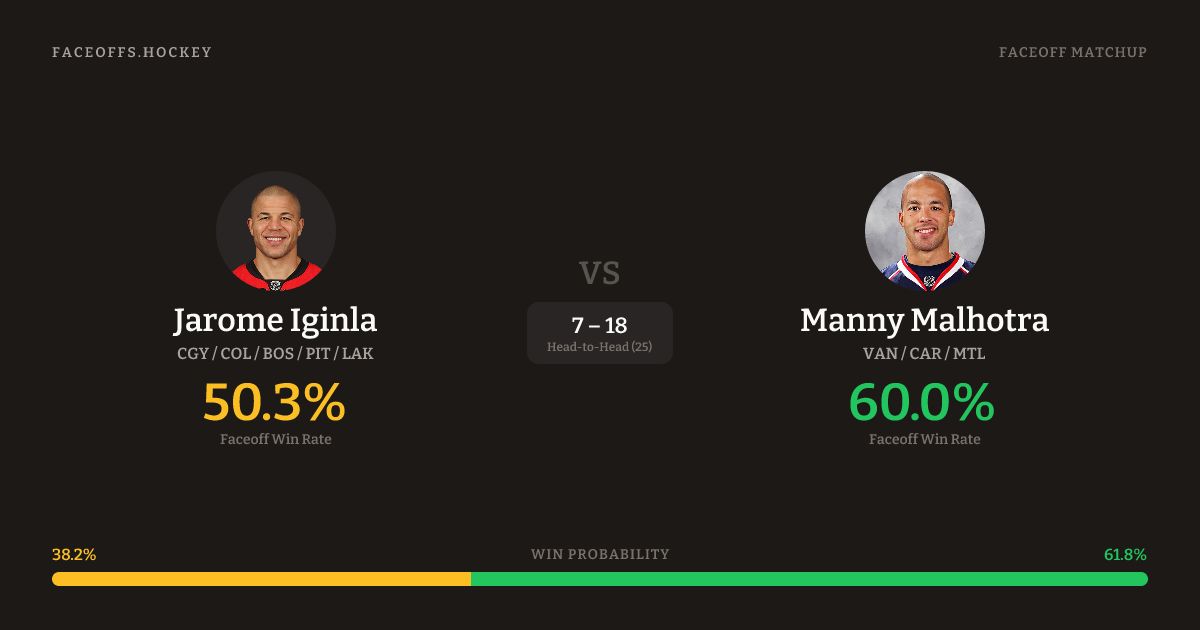 Jarome Iginla vs Manny Malhotra — Faceoff Head-to-Head