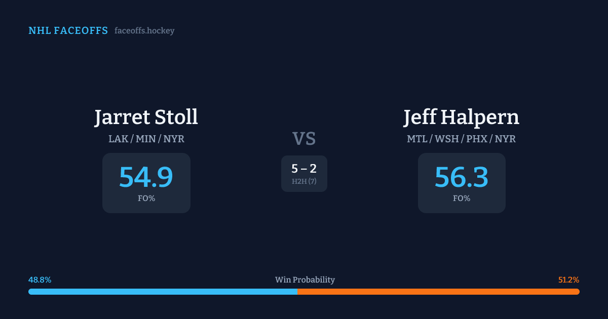 Jarret Stoll vs Jeff Halpern — Faceoff Head-to-Head