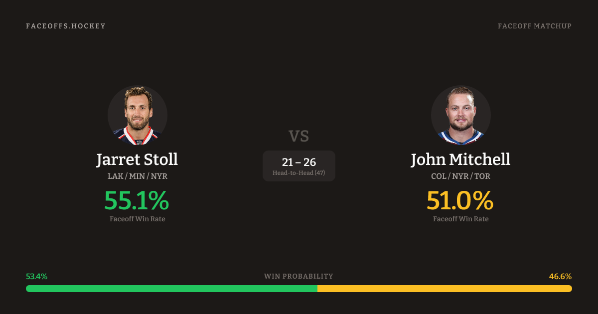 Jarret Stoll vs John Mitchell — Faceoff Head-to-Head