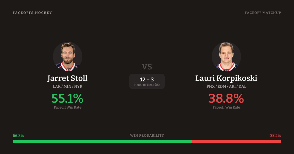 Jarret Stoll vs Lauri Korpikoski — Faceoff Head-to-Head