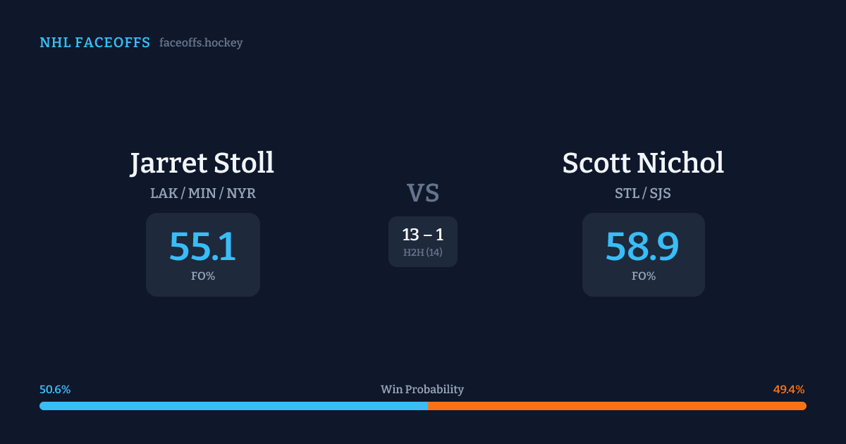 Jarret Stoll vs Scott Nichol — Faceoff Head-to-Head