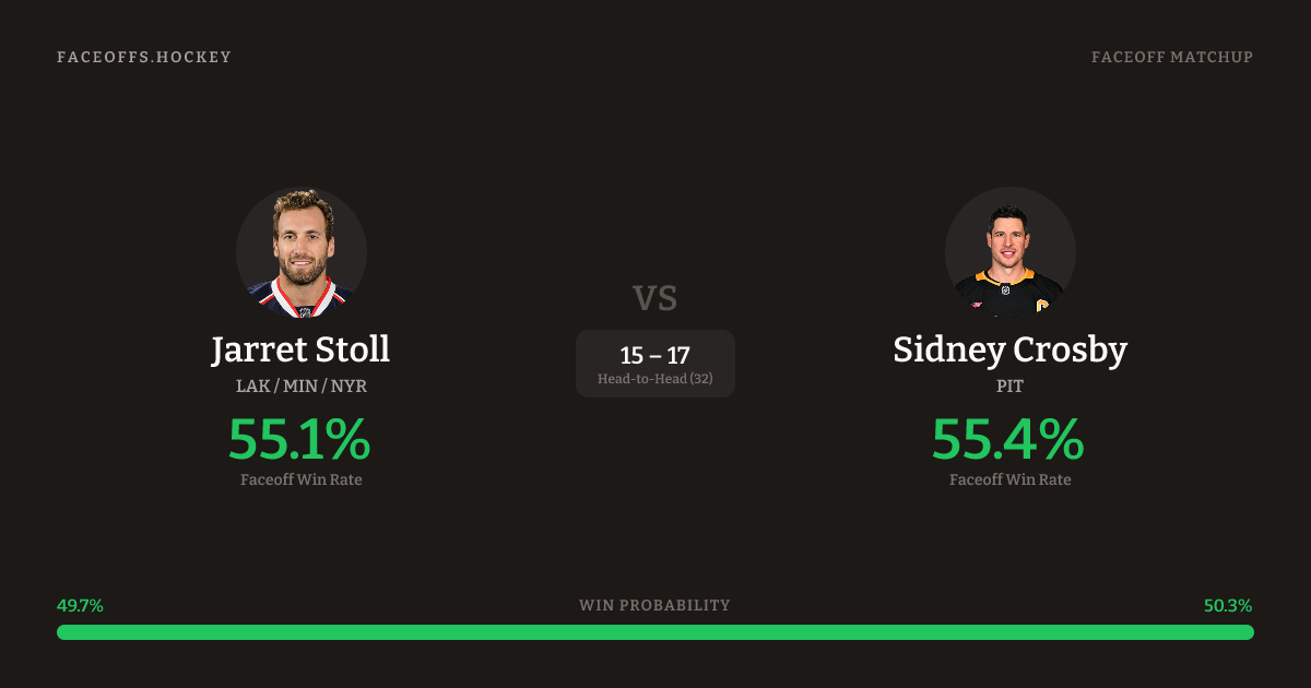 Jarret Stoll vs Sidney Crosby — Faceoff Head-to-Head