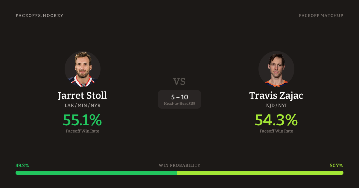 Jarret Stoll vs Travis Zajac — Faceoff Head-to-Head