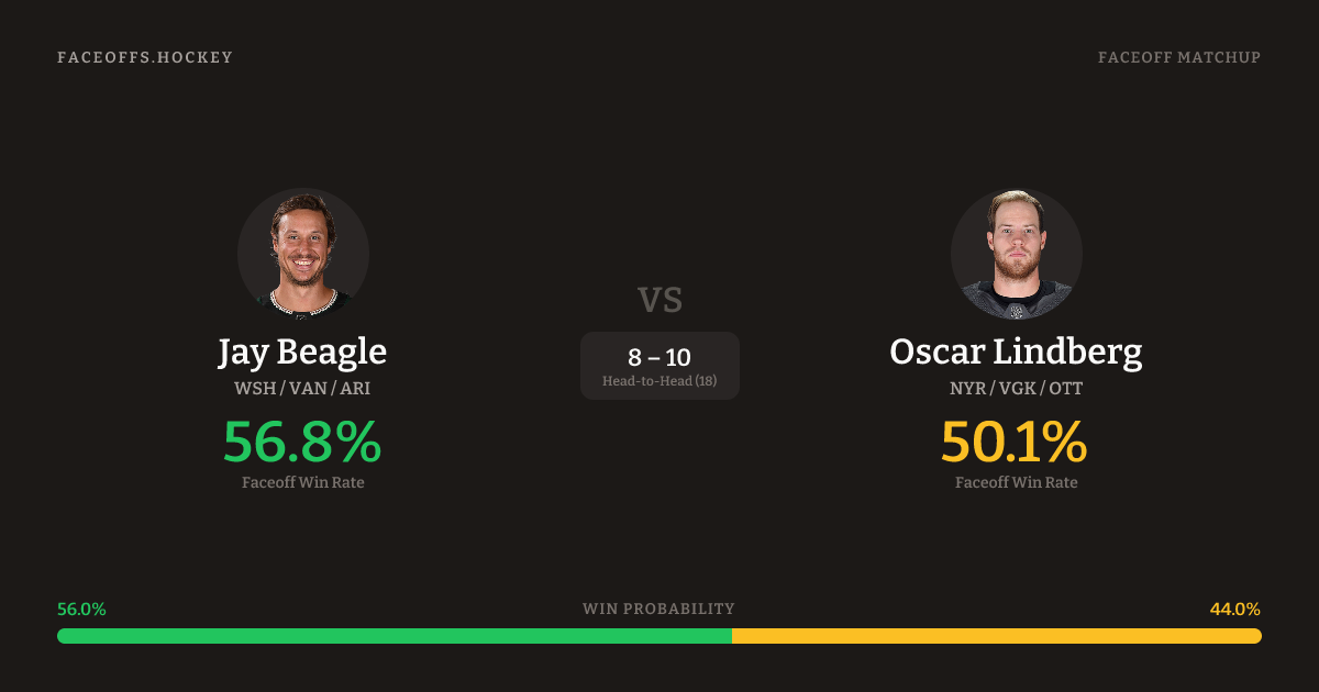 Jay Beagle vs Oscar Lindberg — Faceoff Head-to-Head