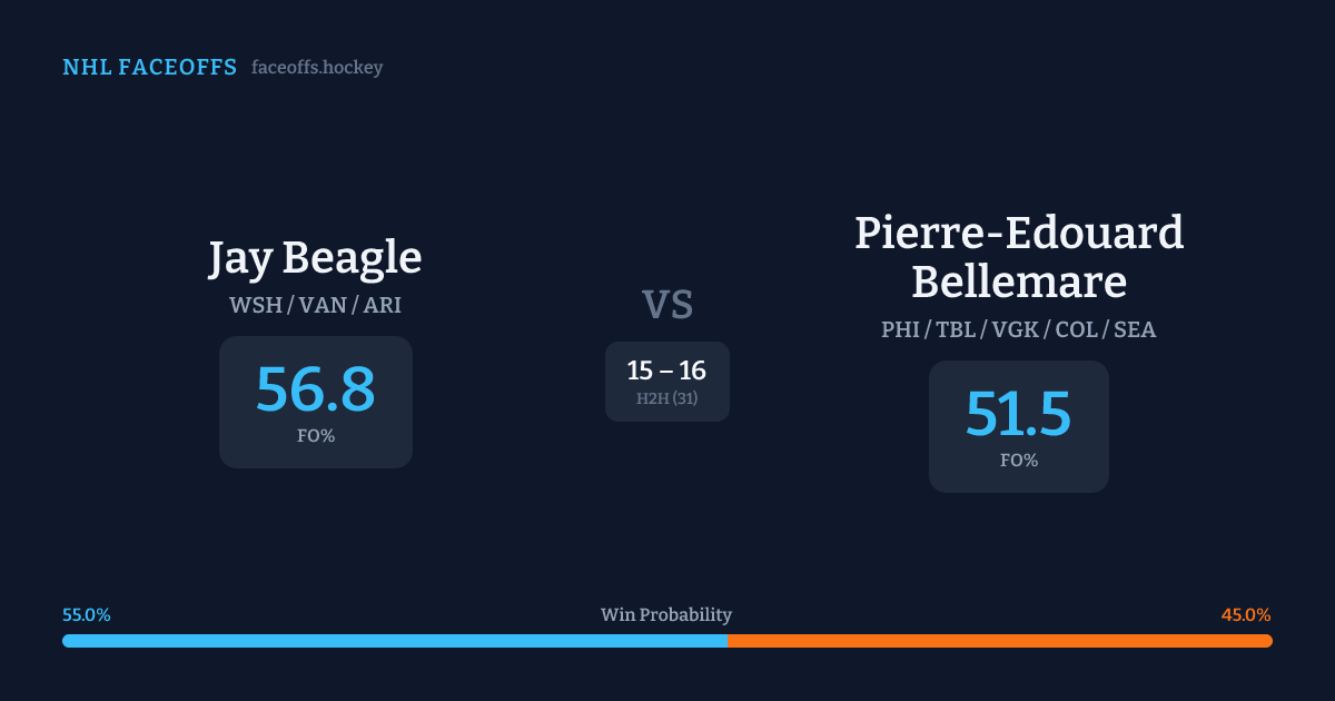 Jay Beagle vs Pierre-Edouard Bellemare — Faceoff Head-to-Head