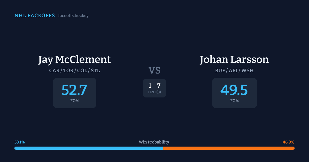 Jay McClement vs Johan Larsson — Faceoff Head-to-Head