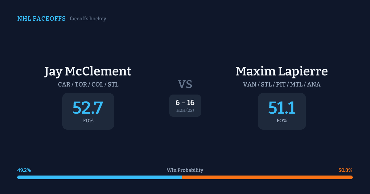 Jay McClement vs Maxim Lapierre — Faceoff Head-to-Head