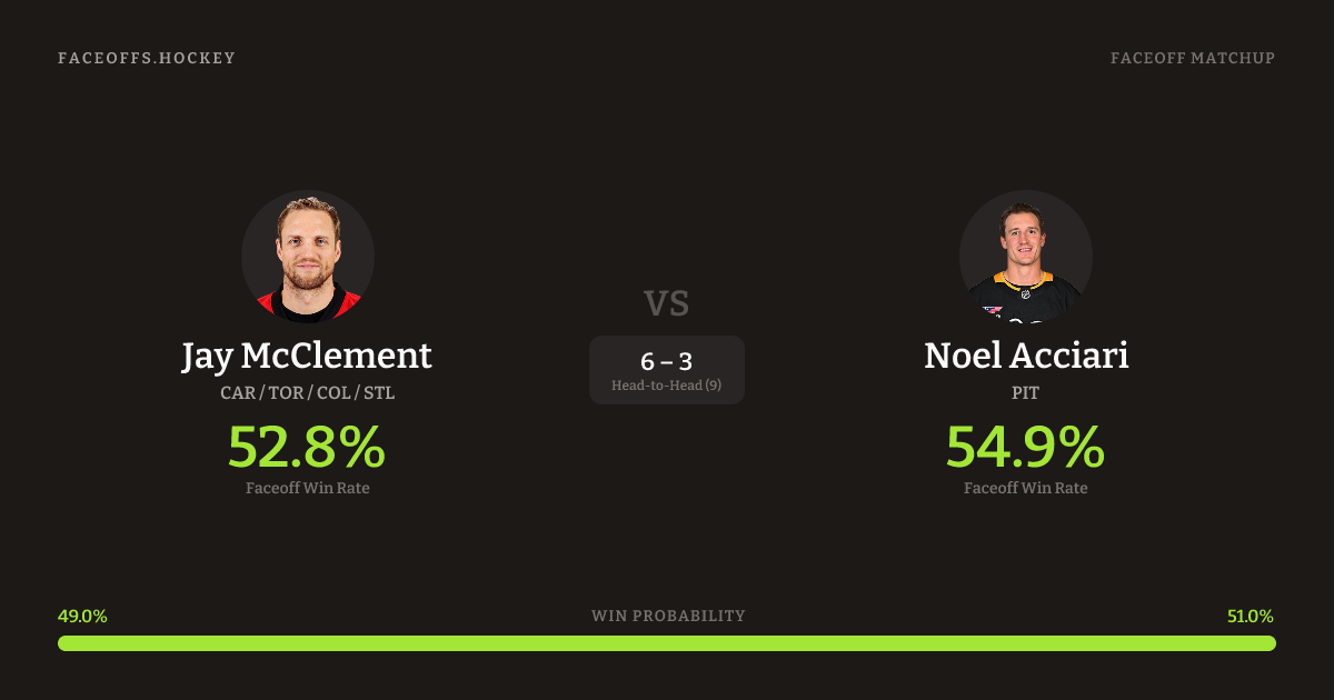 Jay McClement vs Noel Acciari — Faceoff Head-to-Head