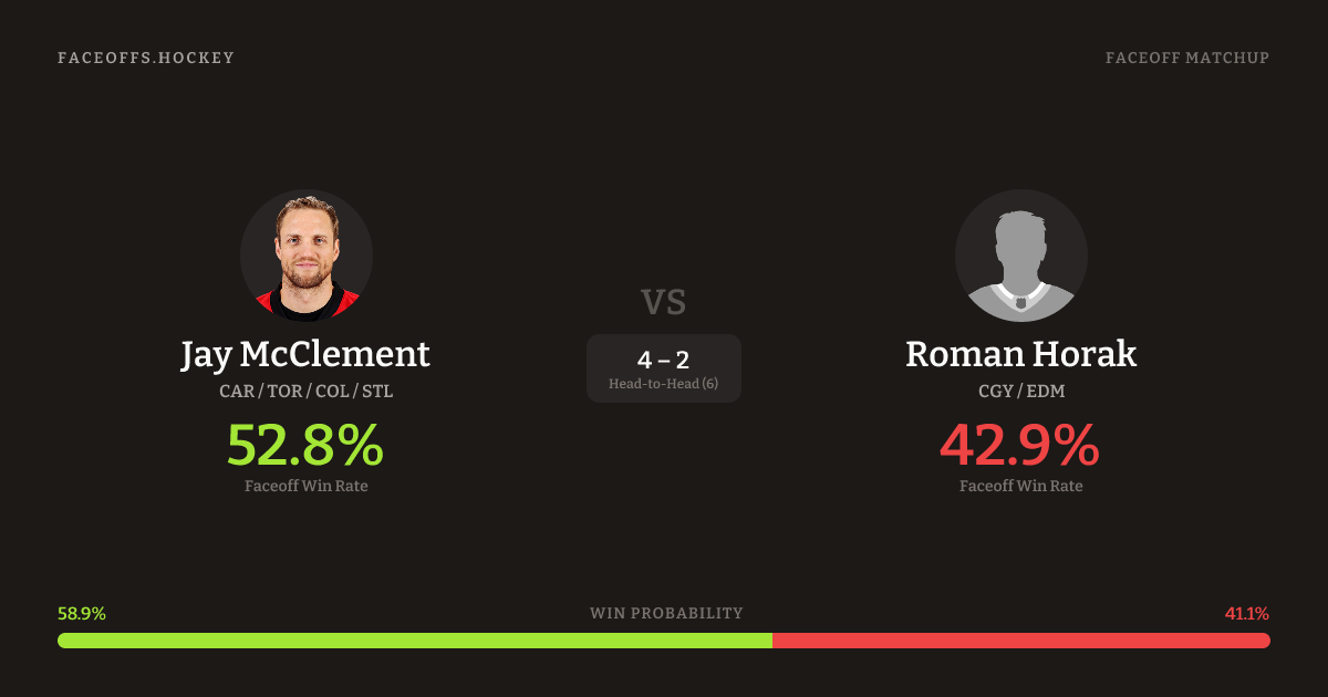 Jay McClement vs Roman Horak — Faceoff Head-to-Head