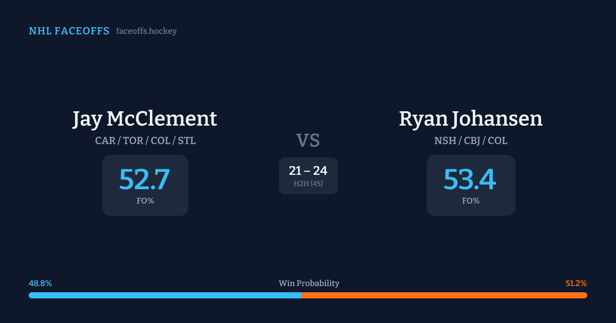 Jay McClement vs Ryan Johansen — Faceoff Head-to-Head