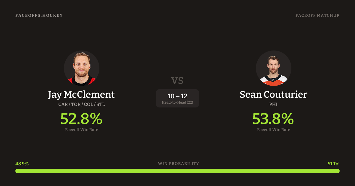 Jay McClement vs Sean Couturier — Faceoff Head-to-Head