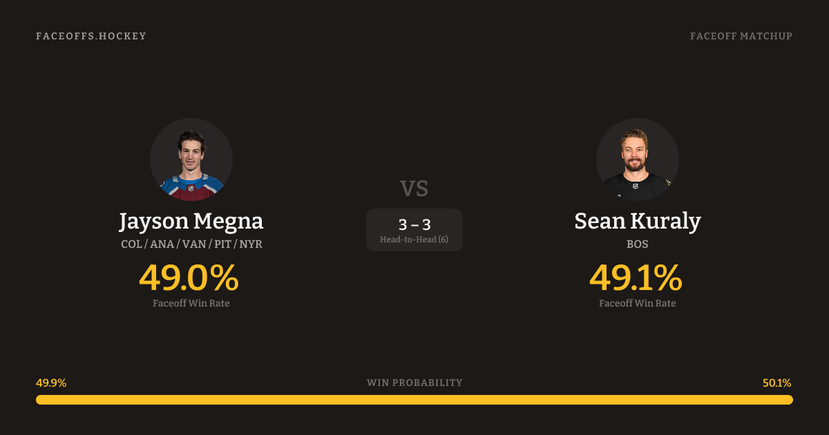 Jayson Megna vs Sean Kuraly — Faceoff Head-to-Head