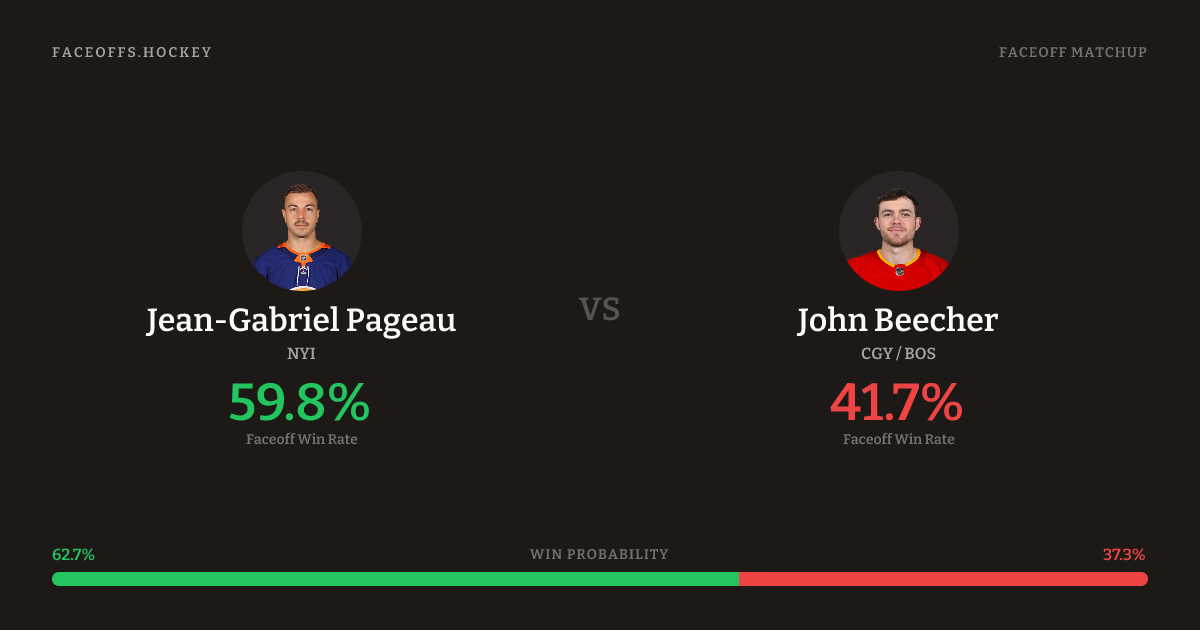 Jean-Gabriel Pageau vs John Beecher — Faceoff Head-to-Head