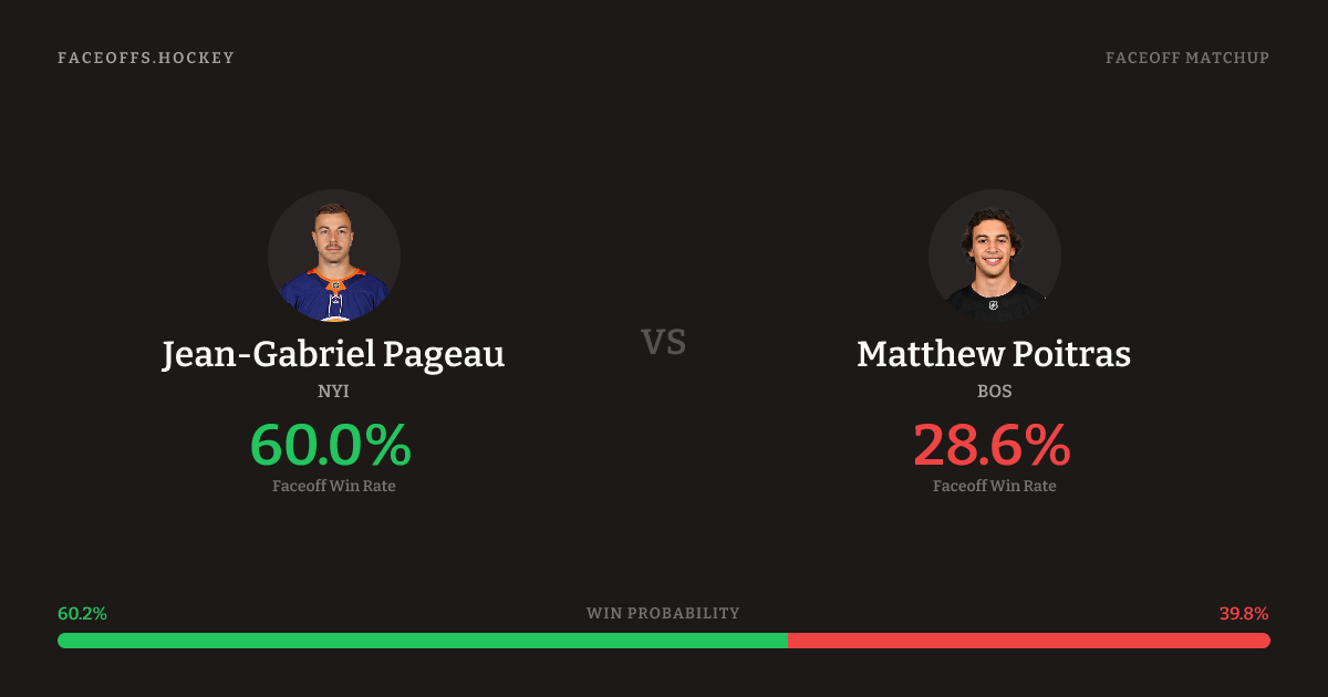Jean-Gabriel Pageau vs Matthew Poitras — Faceoff Head-to-Head
