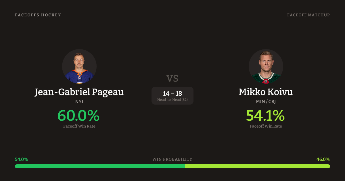 Jean-Gabriel Pageau vs Mikko Koivu — Faceoff Head-to-Head