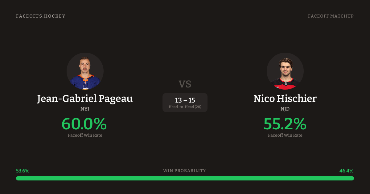 Jean-Gabriel Pageau vs Nico Hischier — Faceoff Head-to-Head
