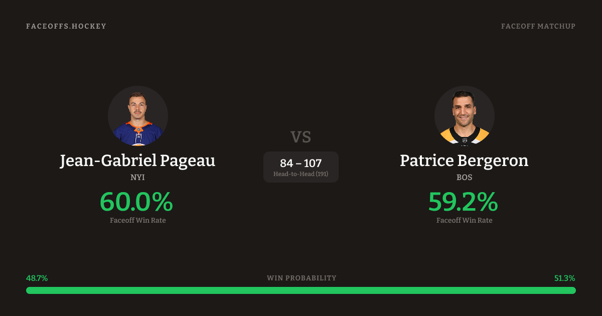 Jean-Gabriel Pageau vs Patrice Bergeron — Faceoff Head-to-Head