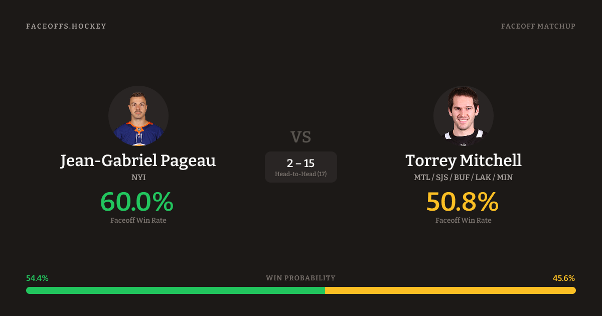 Jean-Gabriel Pageau vs Torrey Mitchell — Faceoff Head-to-Head