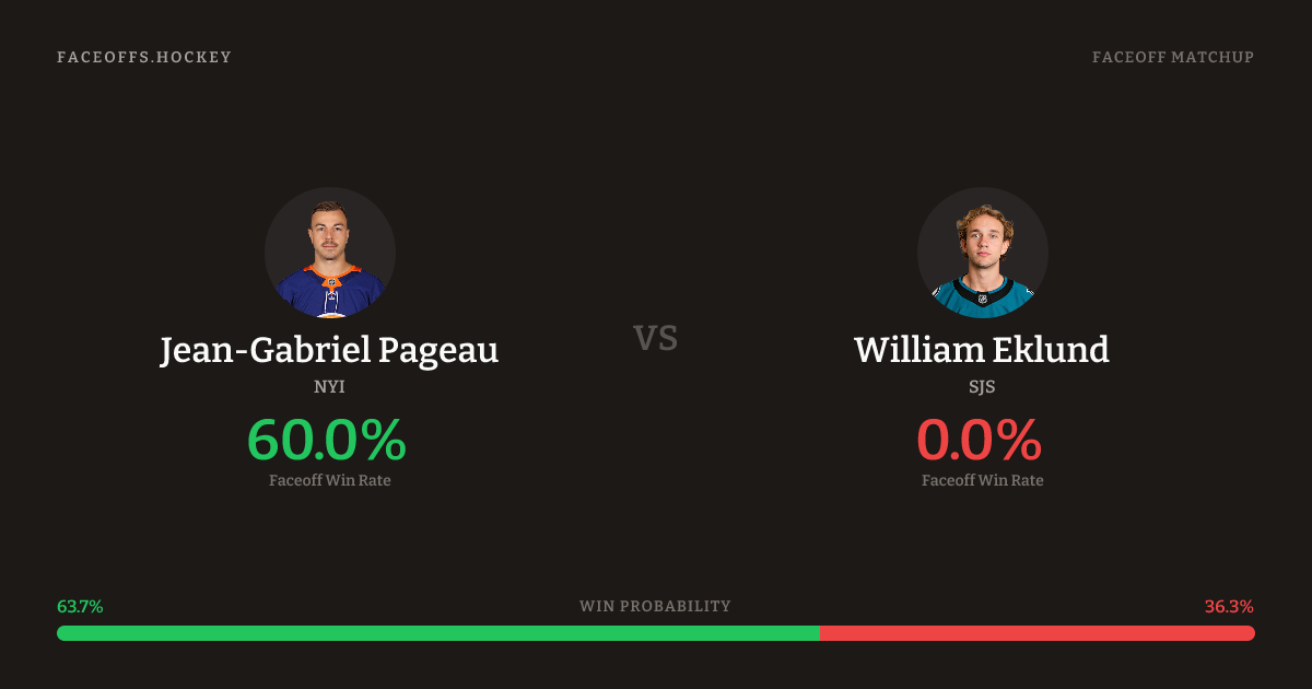 Jean-Gabriel Pageau vs William Eklund — Faceoff Head-to-Head