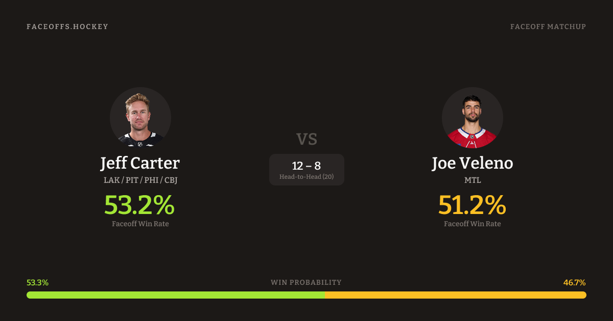Jeff Carter vs Joe Veleno — Faceoff Head-to-Head