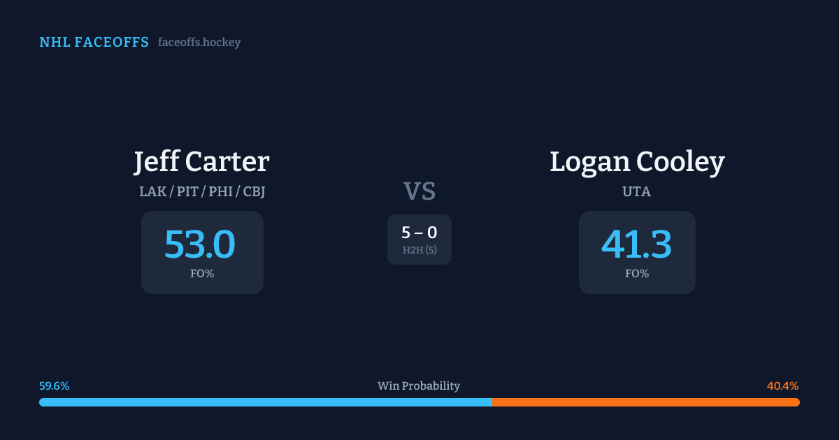 Jeff Carter vs Logan Cooley — Faceoff Head-to-Head