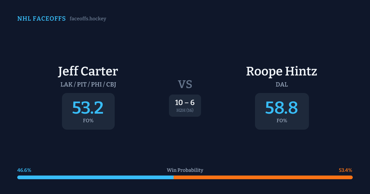 Jeff Carter vs Roope Hintz — Faceoff Head-to-Head