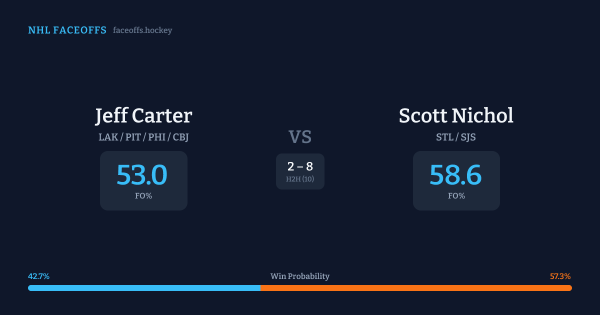Jeff Carter vs Scott Nichol — Faceoff Head-to-Head