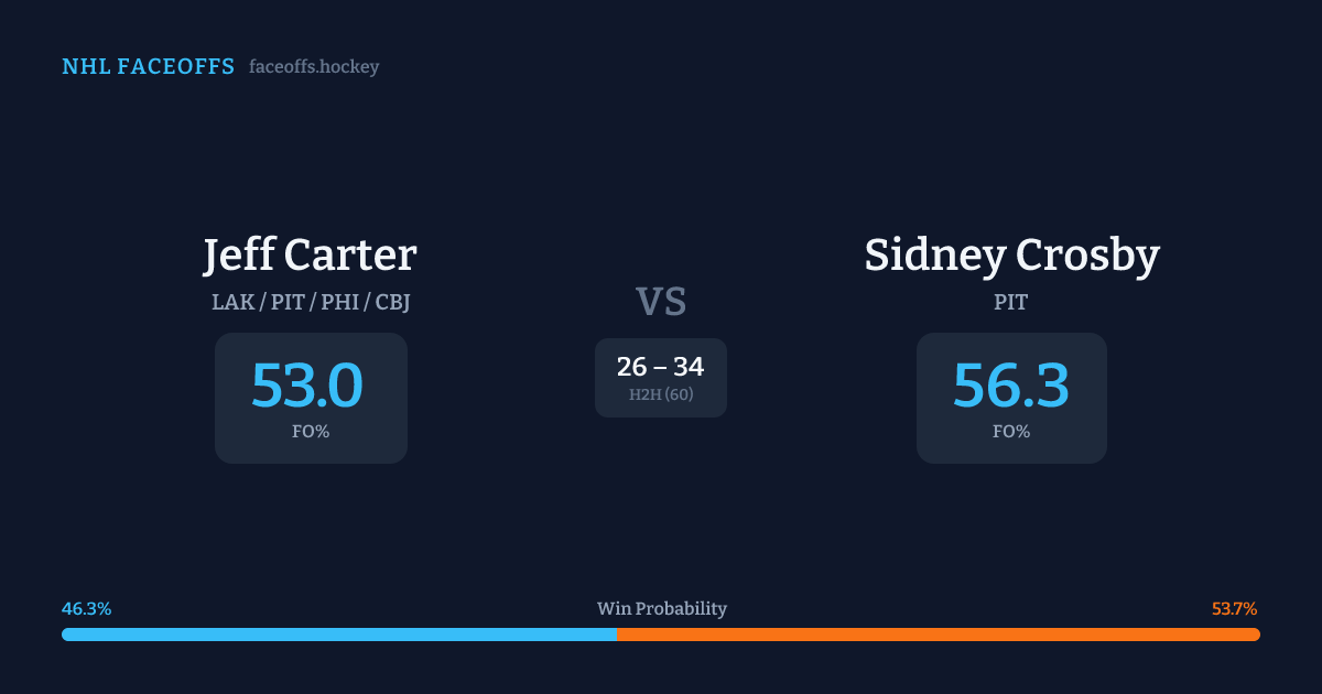 Jeff Carter vs Sidney Crosby — Faceoff Head-to-Head