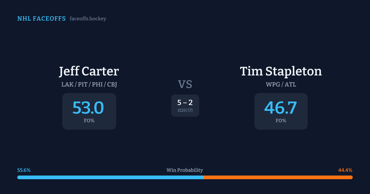 Jeff Carter vs Tim Stapleton — Faceoff Head-to-Head