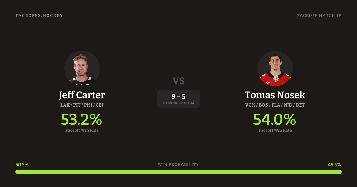 Jeff Carter vs Tomas Nosek — Faceoff Head-to-Head