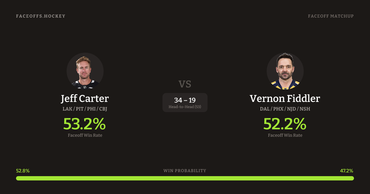 Jeff Carter vs Vernon Fiddler — Faceoff Head-to-Head