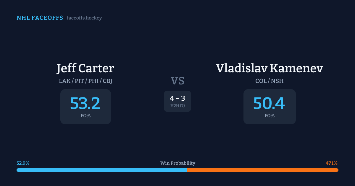 Jeff Carter vs Vladislav Kamenev — Faceoff Head-to-Head