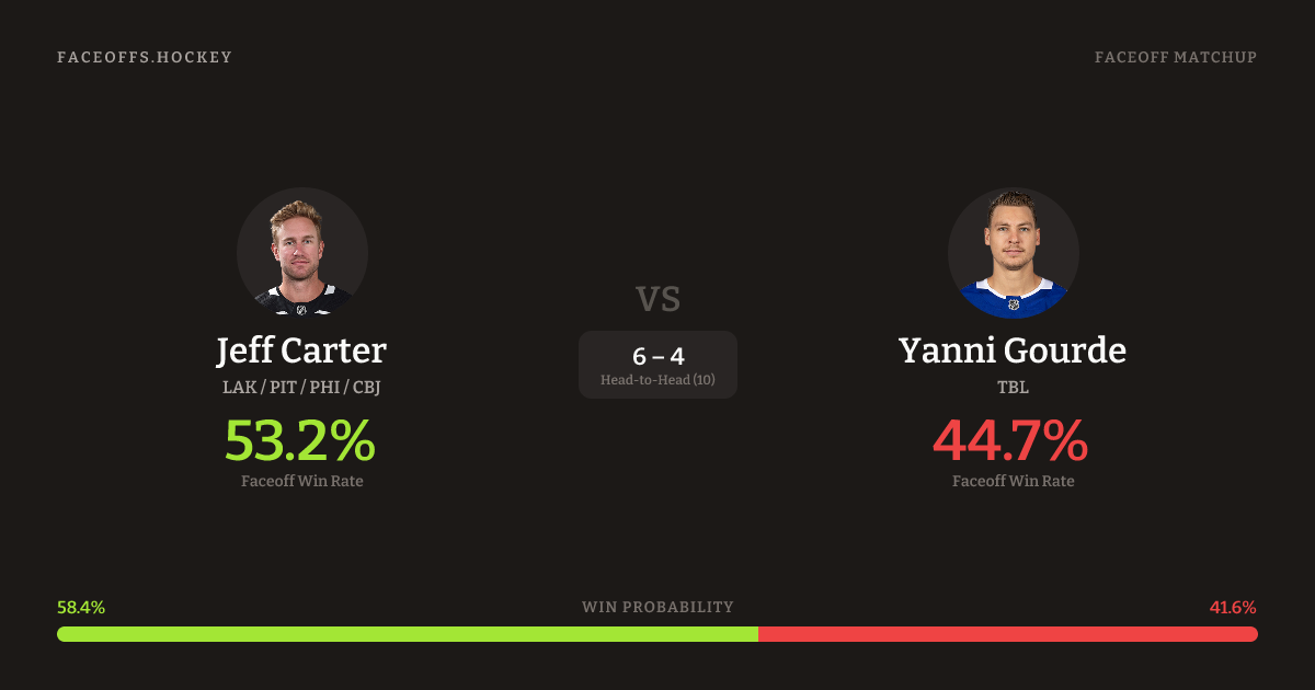 Jeff Carter vs Yanni Gourde — Faceoff Head-to-Head