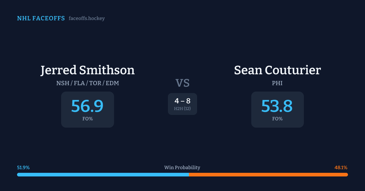 Jerred Smithson vs Sean Couturier — Faceoff Head-to-Head