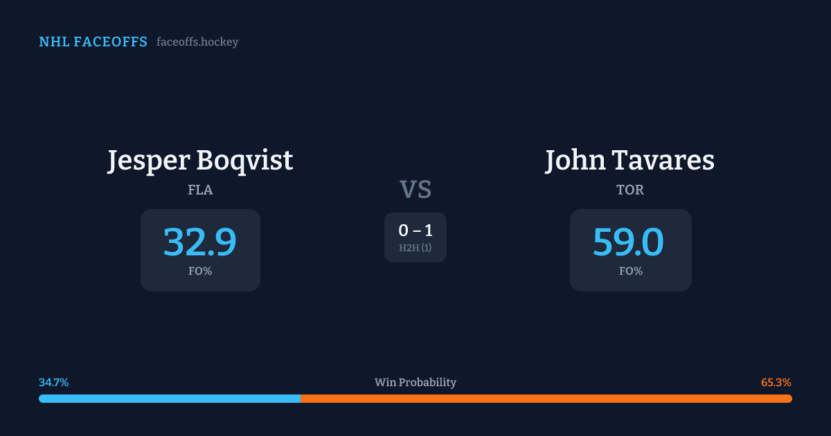 Jesper Boqvist vs John Tavares — Faceoff Head-to-Head