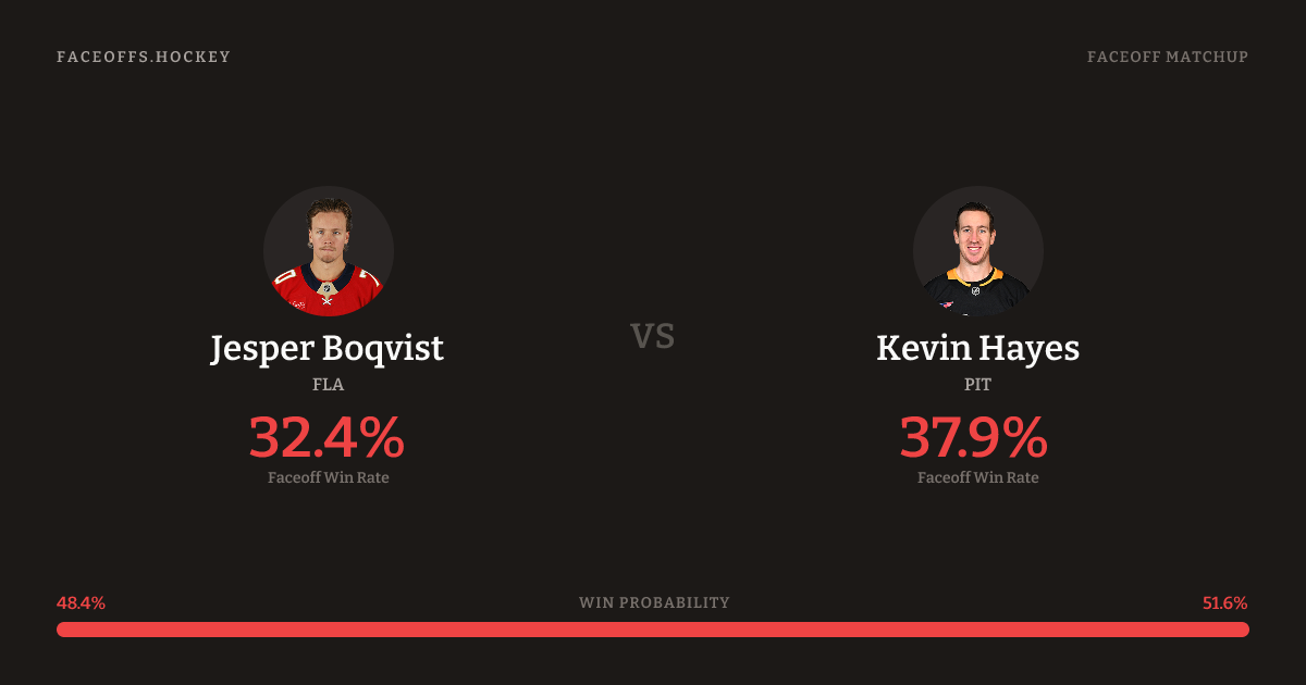 Jesper Boqvist vs Kevin Hayes — Faceoff Head-to-Head