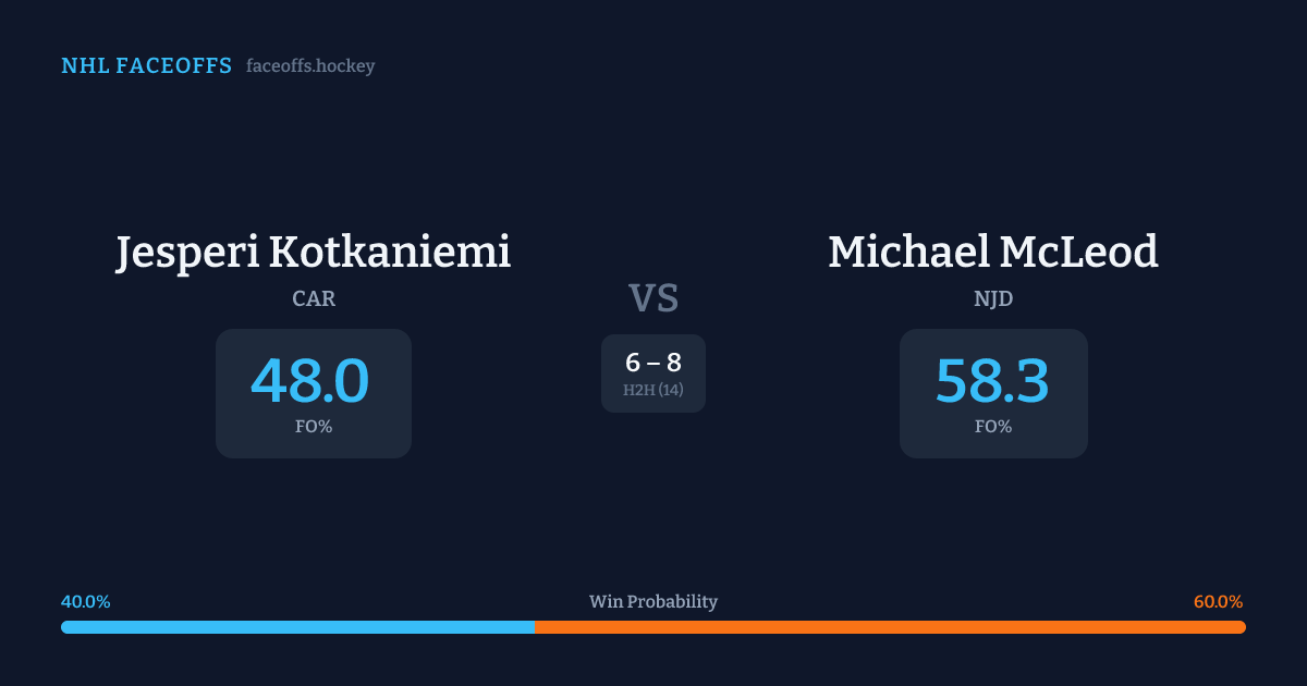Jesperi Kotkaniemi vs Michael McLeod — Faceoff Head-to-Head