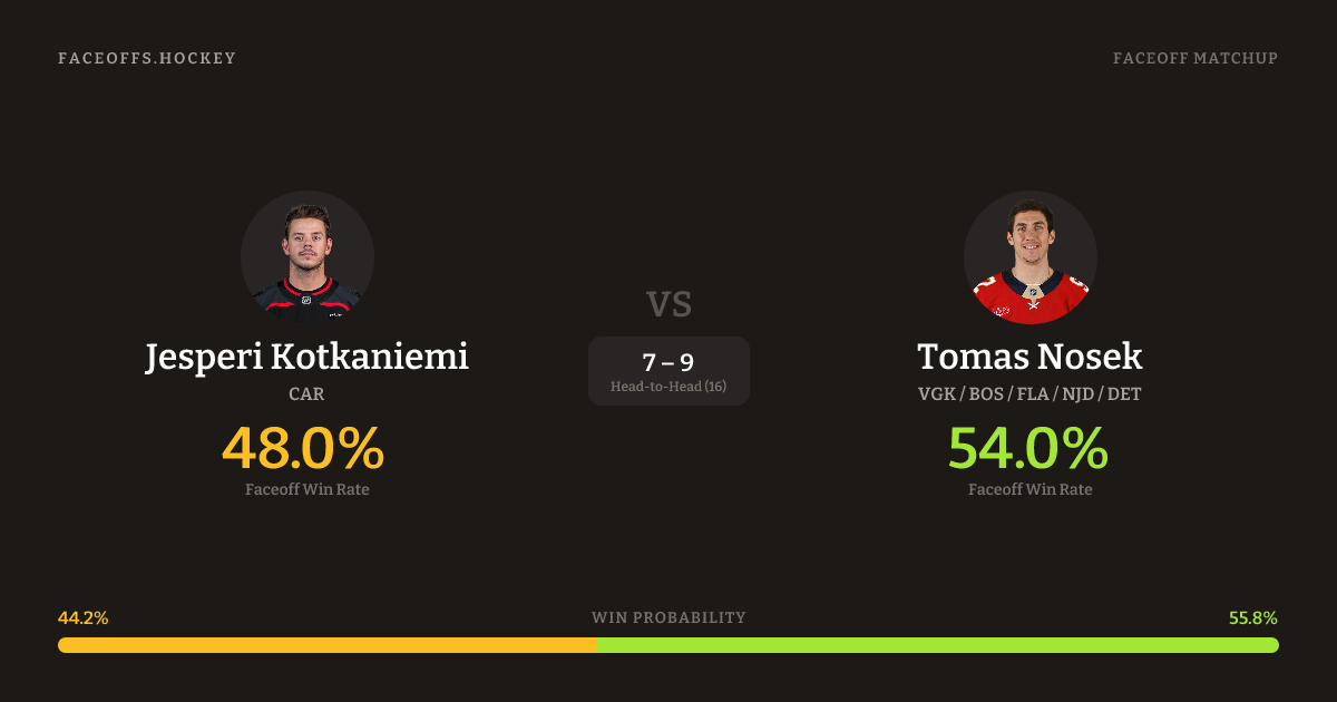 Jesperi Kotkaniemi vs Tomas Nosek — Faceoff Head-to-Head