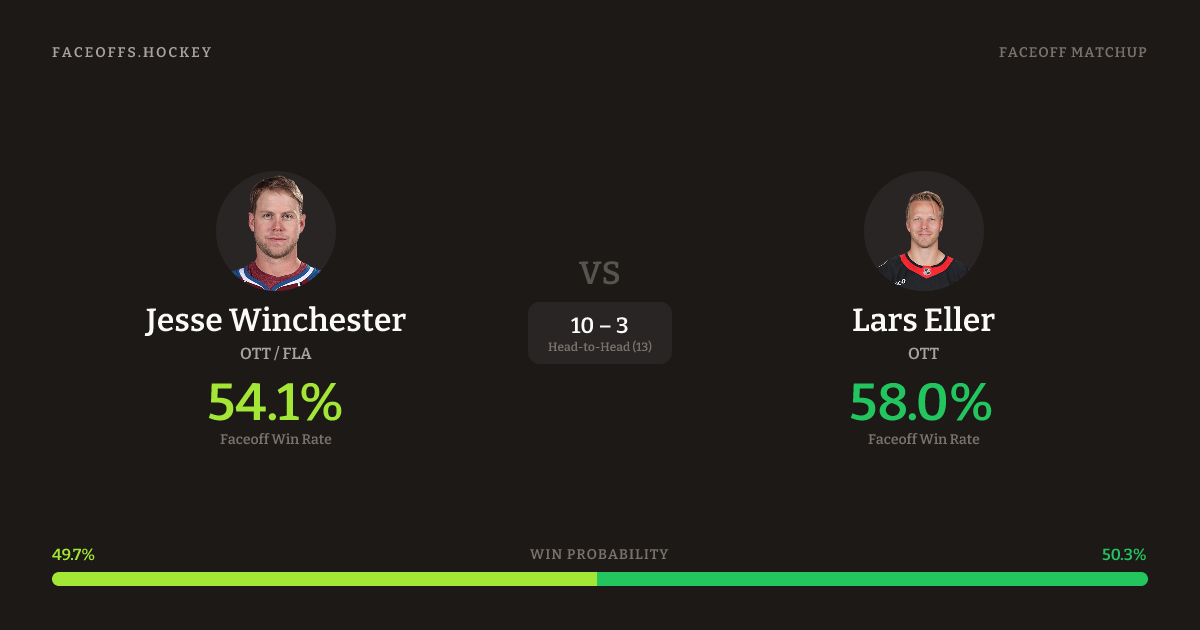Jesse Winchester vs Lars Eller — Faceoff Head-to-Head