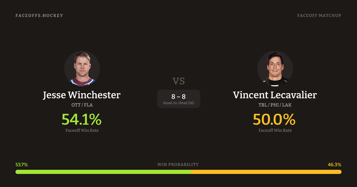 Jesse Winchester vs Vincent Lecavalier — Faceoff Head-to-Head