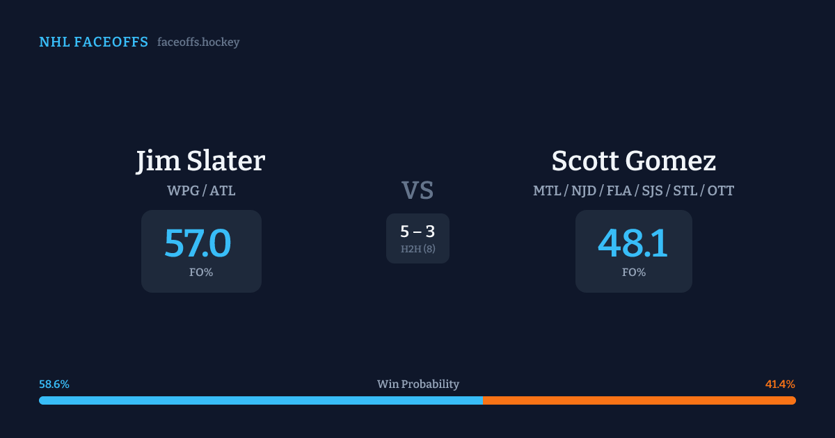 Jim Slater vs Scott Gomez — Faceoff Head-to-Head