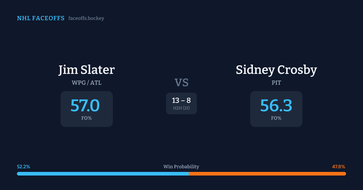 Jim Slater vs Sidney Crosby — Faceoff Head-to-Head