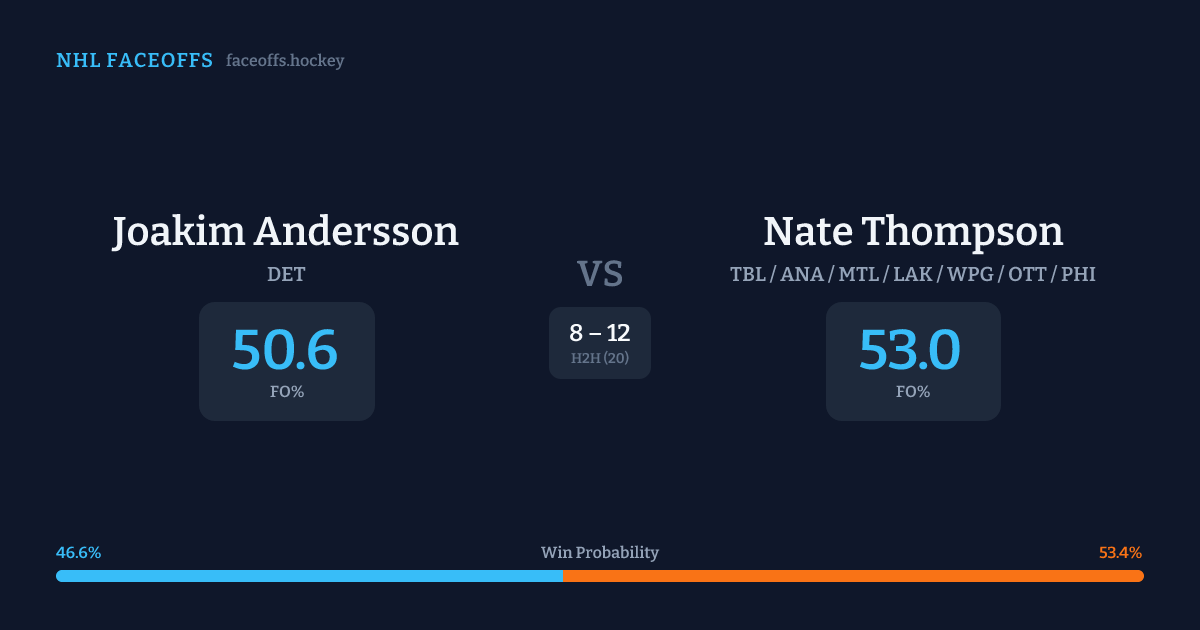 Joakim Andersson vs Nate Thompson — Faceoff Head-to-Head
