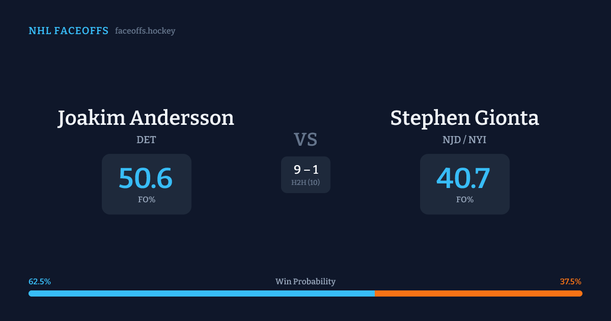 Joakim Andersson vs Stephen Gionta — Faceoff Head-to-Head