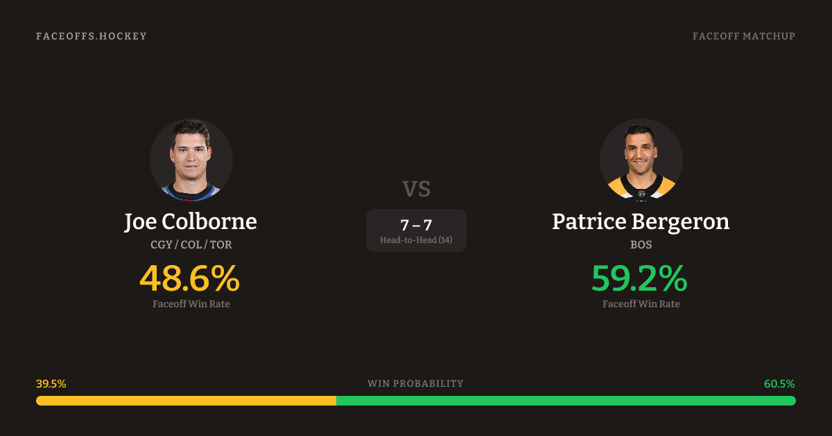 Joe Colborne vs Patrice Bergeron — Faceoff Head-to-Head