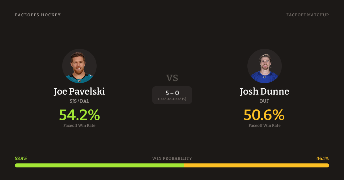 Joe Pavelski vs Josh Dunne — Faceoff Head-to-Head